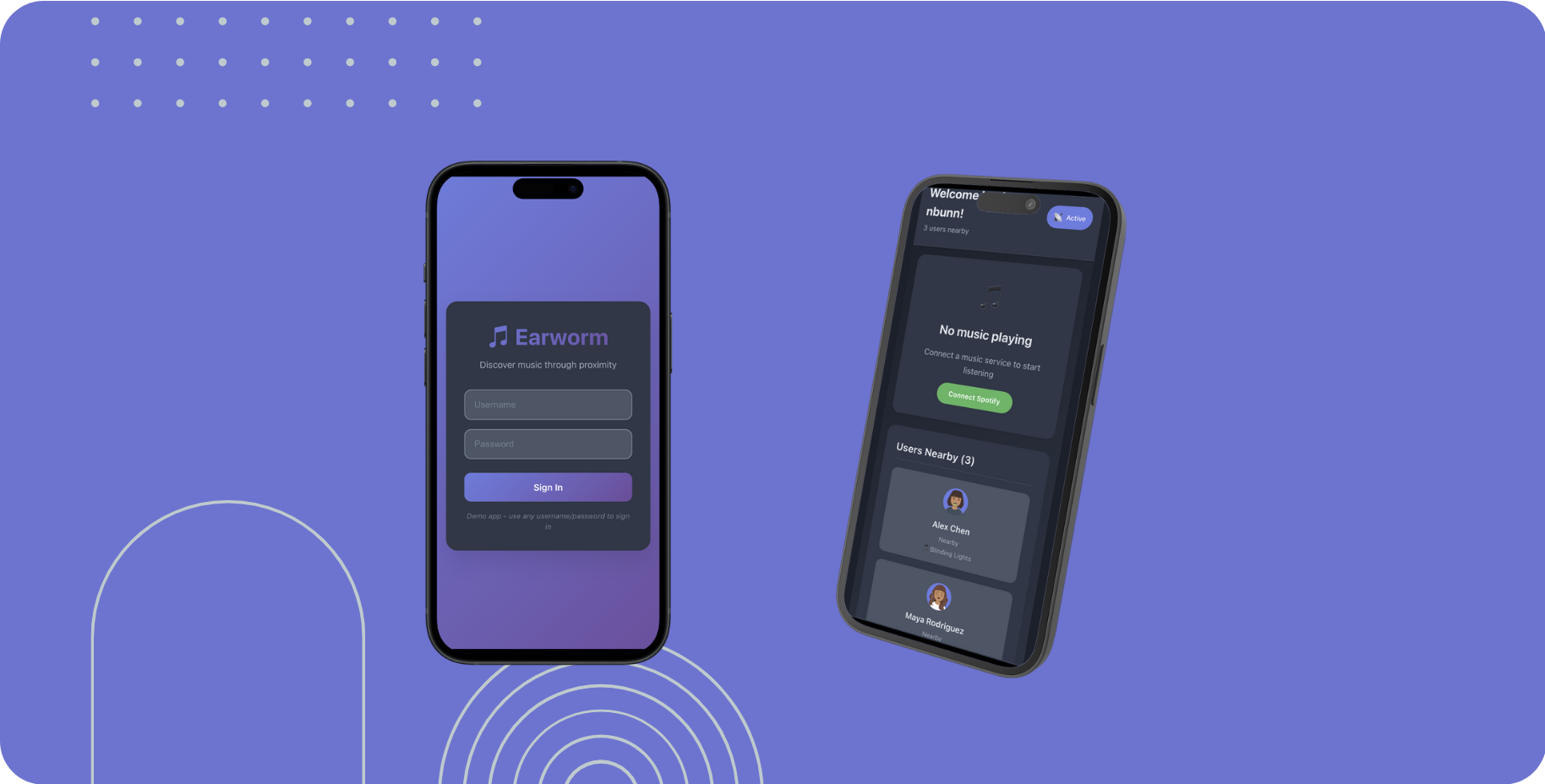 I am building an app that will allow users to see what music others in their area are listening to. Users can connect accounts from Apple Music, Spotify, SoundCloud, or Musi to share their listening history. You can view your own listening data, but you can also automatically exchange profiles with nearby users. When someone with the app is within ~8 meters, their avatar appears on your screen, and you can view their profile and activity. A discovery screen shows all nearby users’ profiles in real time, and even if the app is closed, a history list logs everyone you’ve passed.